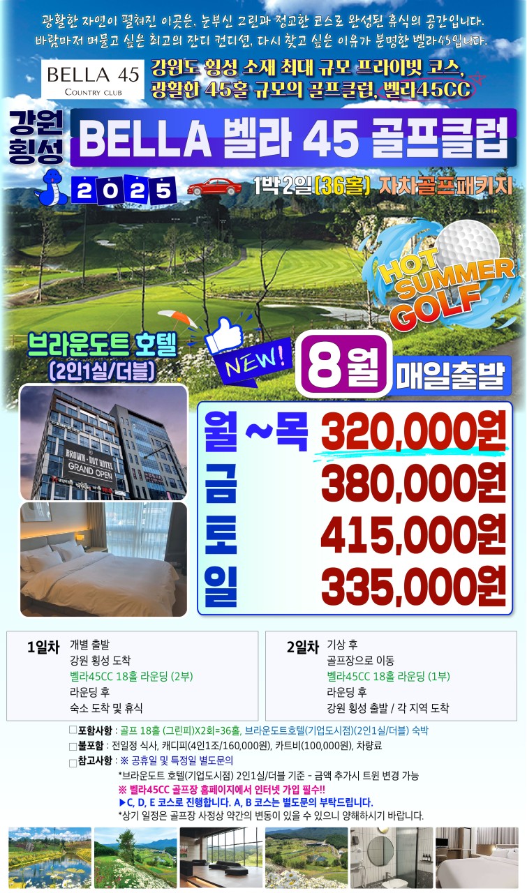 | ⛳강원도 삼척 블랙밸리CC&태백 오투CC 8~9월 1박2일골프패키지 (0) | 2025.08.11 |