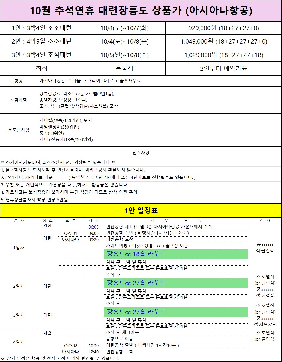 📅 10/9 (목 : 2박3일. 0+18+18). 1.260.000원 ~