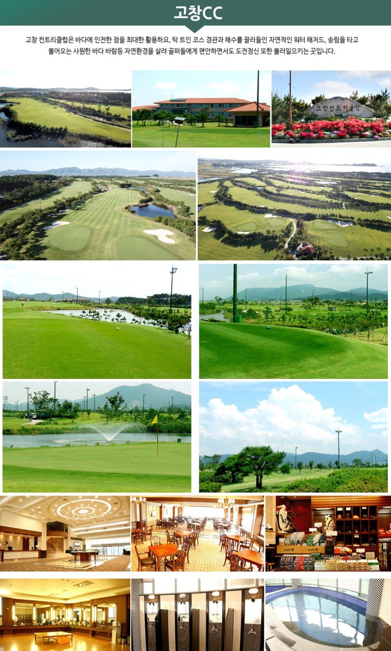고창CC는 바다에 인접한 점을 최대한 활용하여, 탁 트인 코스 경관과 해수를 끌어들인 자연적인 워터 해저드,송림을 타고 불어오는 시원한 바다 바람 등 자연친화적 골프장입니다.