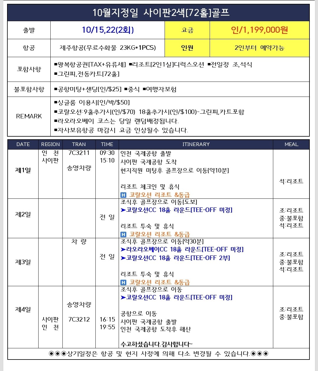 10월지정일 사이판2색골프