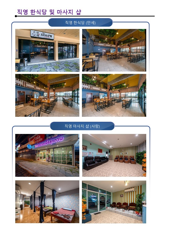 ✔ 직영 한식당 운영 및 마사지샵 운영
