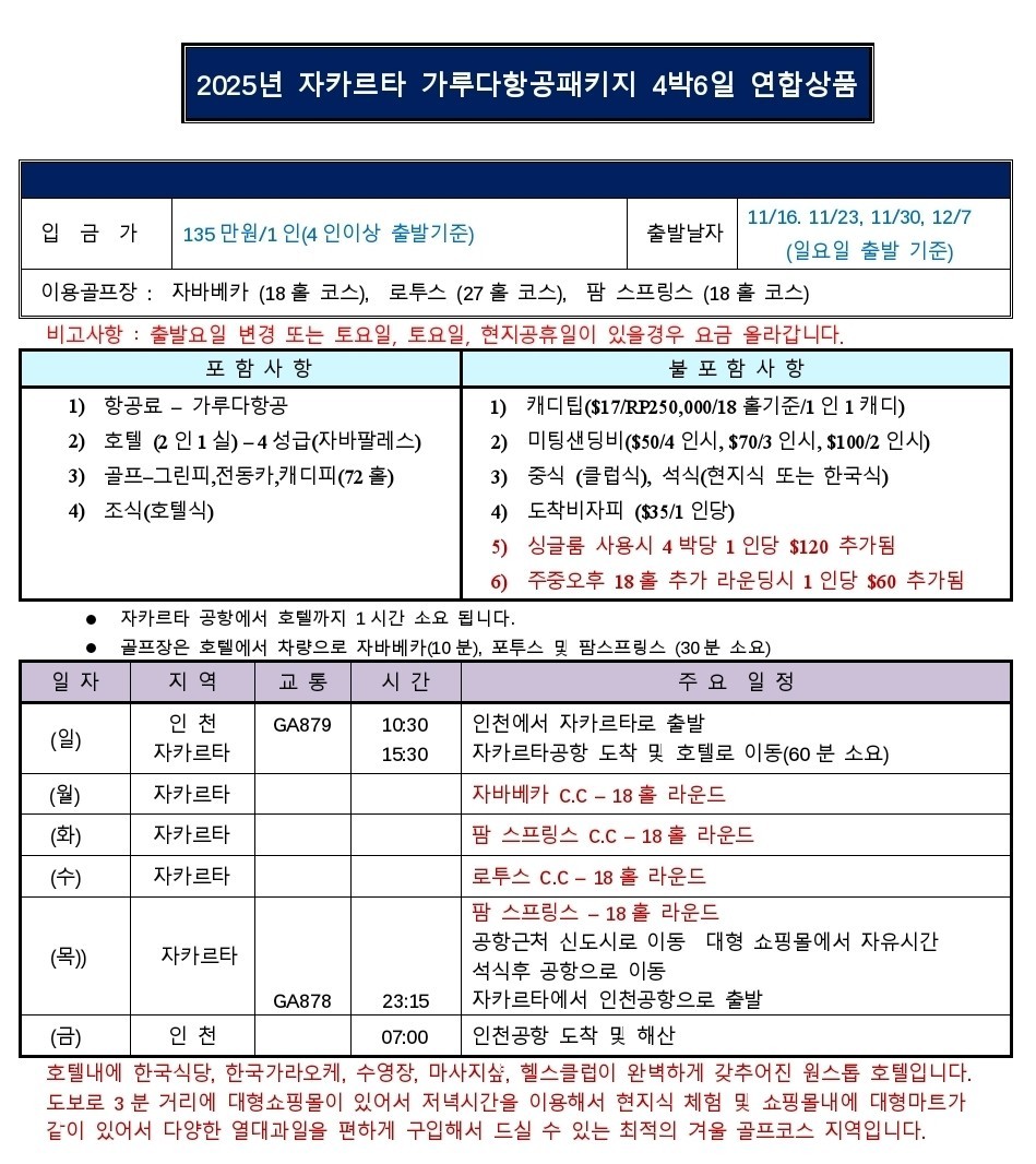#지정일특가 #자카르타골프 #인도네시아골프 #동남아골프