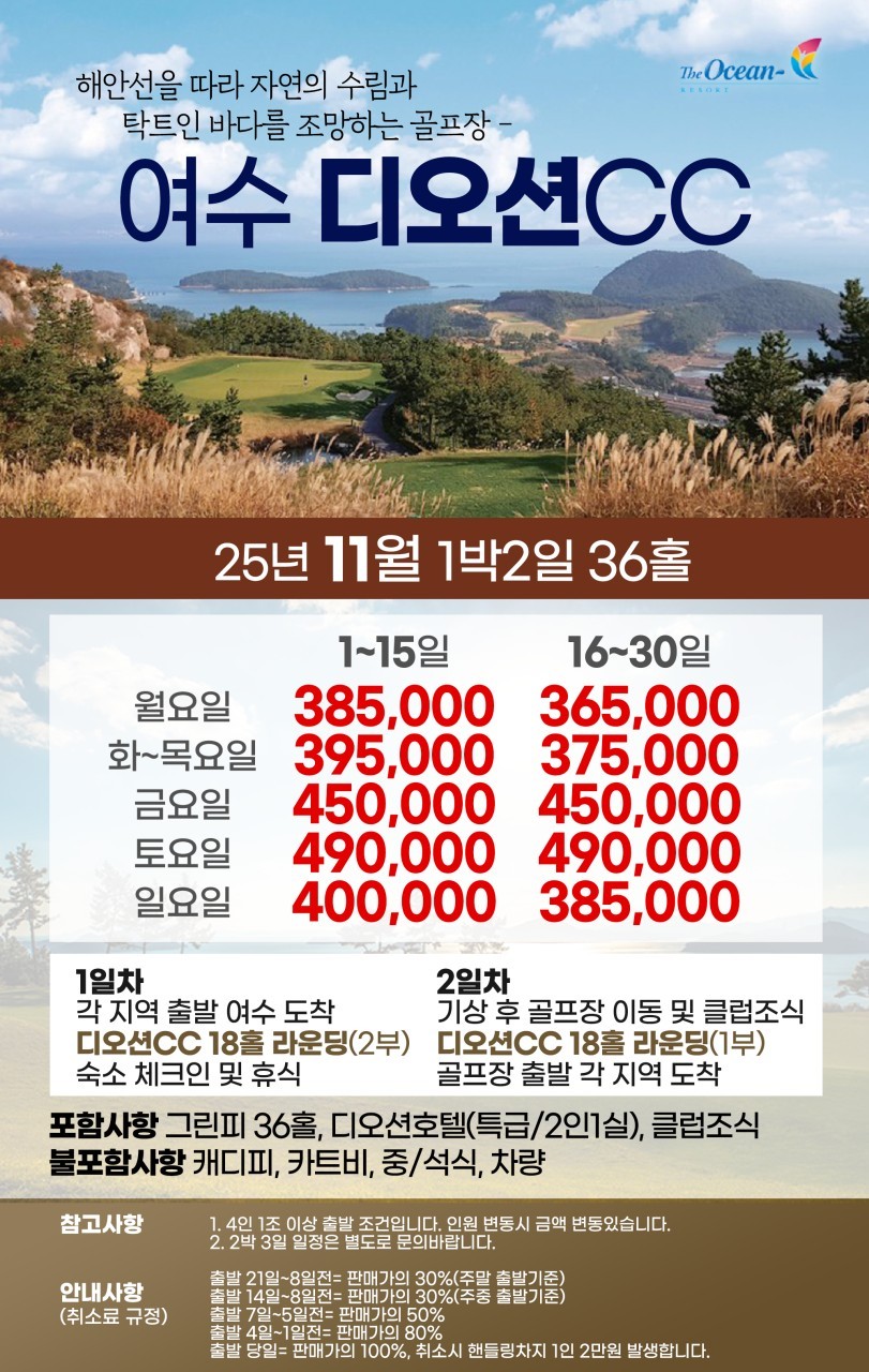 #오션뷰골프장 #디오션CC #1박2일골프 #전라도골프 #골프텔숙박 #국내골프여행 #국내골프패키지