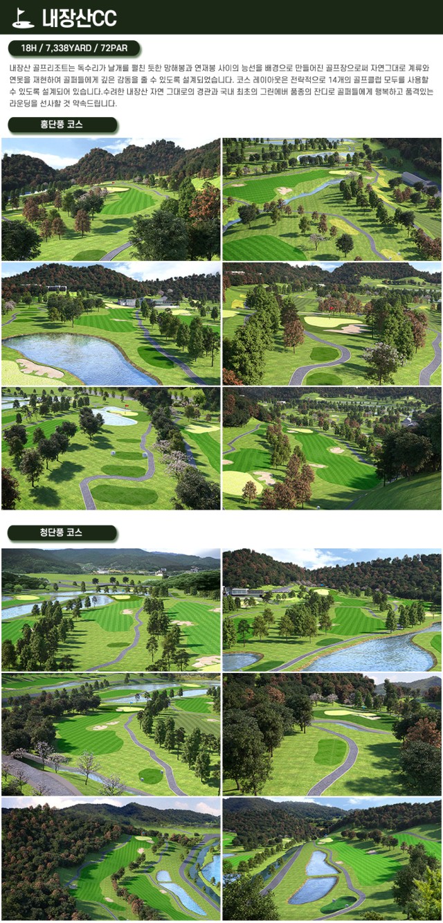 이 골프장은 내장산의 자연경관을 배경으로 하여, 골프와 자연을 동시에 즐길 수 있는 최적의 장소로 많은 골퍼들에게 사랑받고 있습니다.
