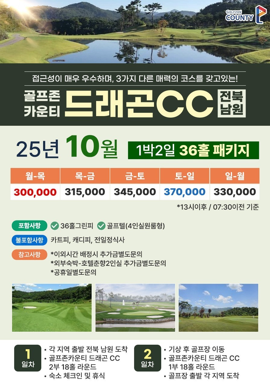 ⛳전북 남원 골프존카운티 드래곤CC 1박2일골프