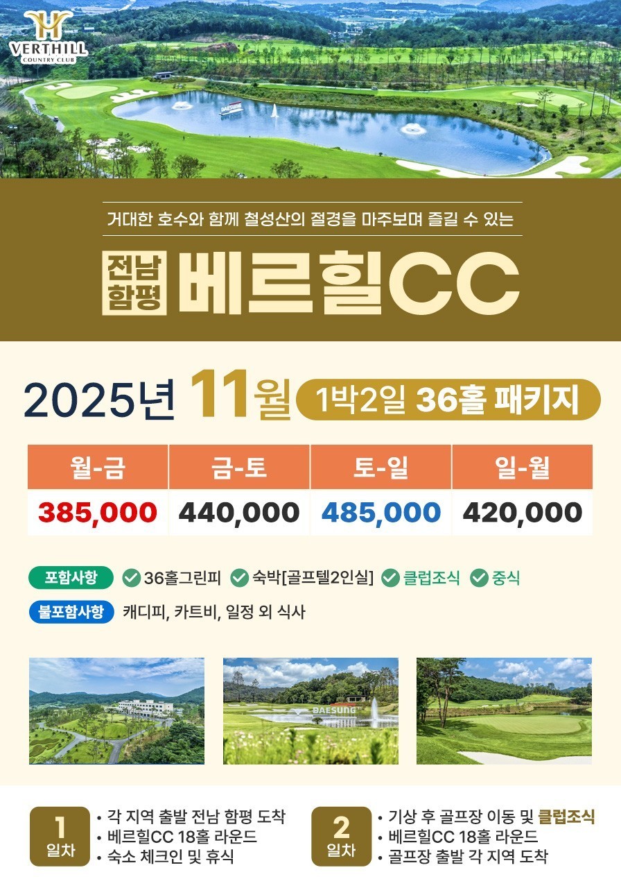 | 전남 함평 엘리체CC 11월 1박2일골프패키지 예약 (0) | 2025.10.22 |