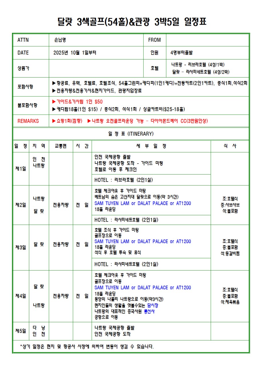 ⛳베트남 달랏 3색골프 3박5일(가이드+투어포함)