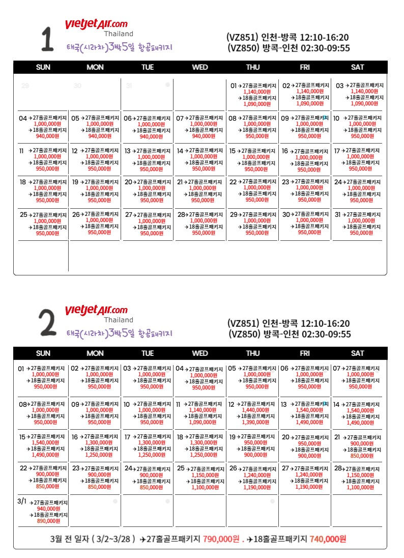 ■ 1인 18홀 (그린피,카트,캐디) 추가비용 – 시암 18만원, 람차방 12만원, 파타나/부라파/피닉스 10만원