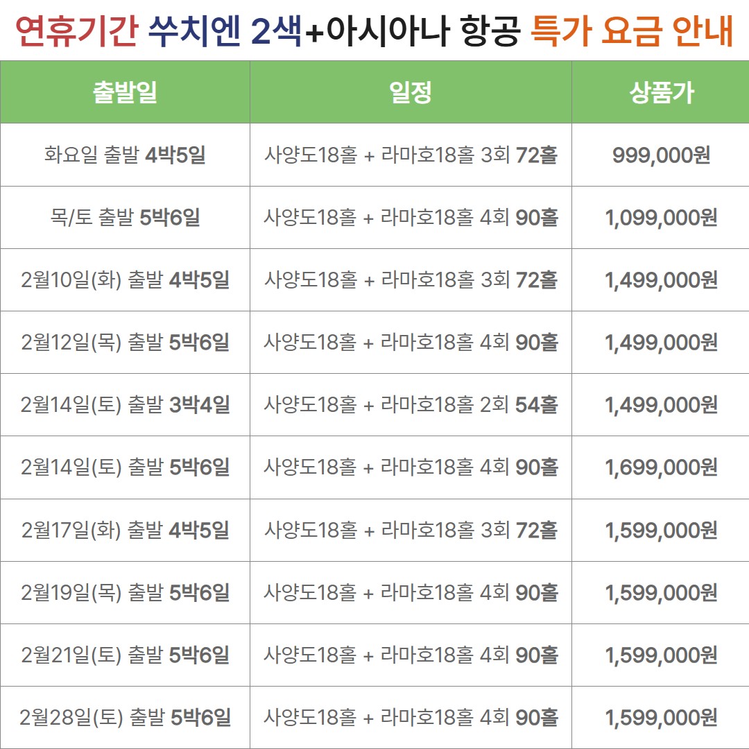 하지만 쑤치엔 2색골프의 금액은 999,000원부터