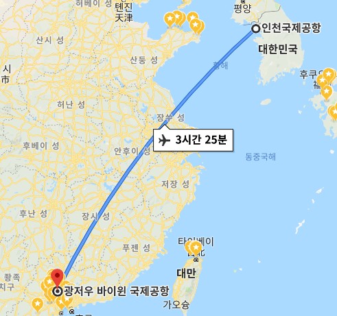 ✈️ 인천–광저우 3시간 20분, 부담 없는 비행거리이며