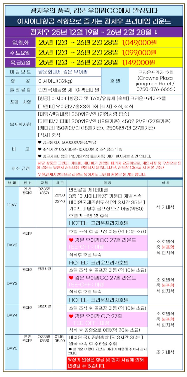 | 중국 난징 남경 태양도CC+엘리시안CC 2색골프패키지 예약 (0) | 2025.11.26 |