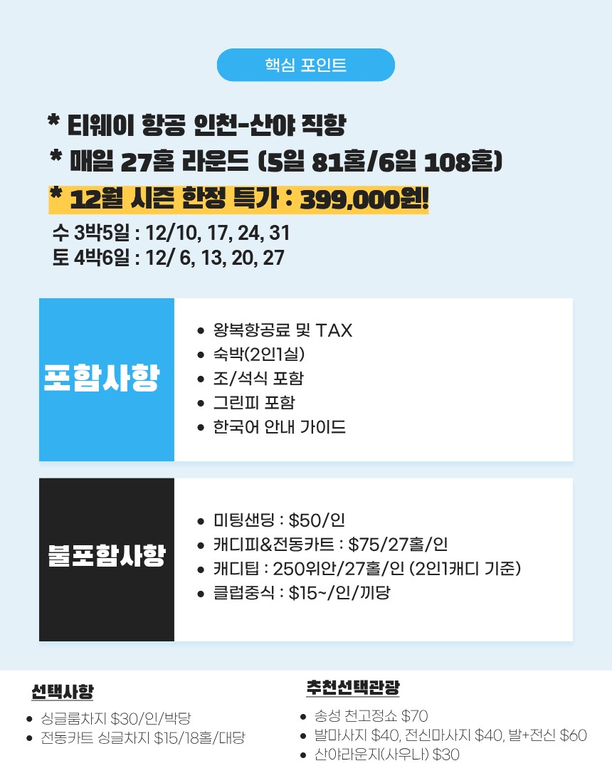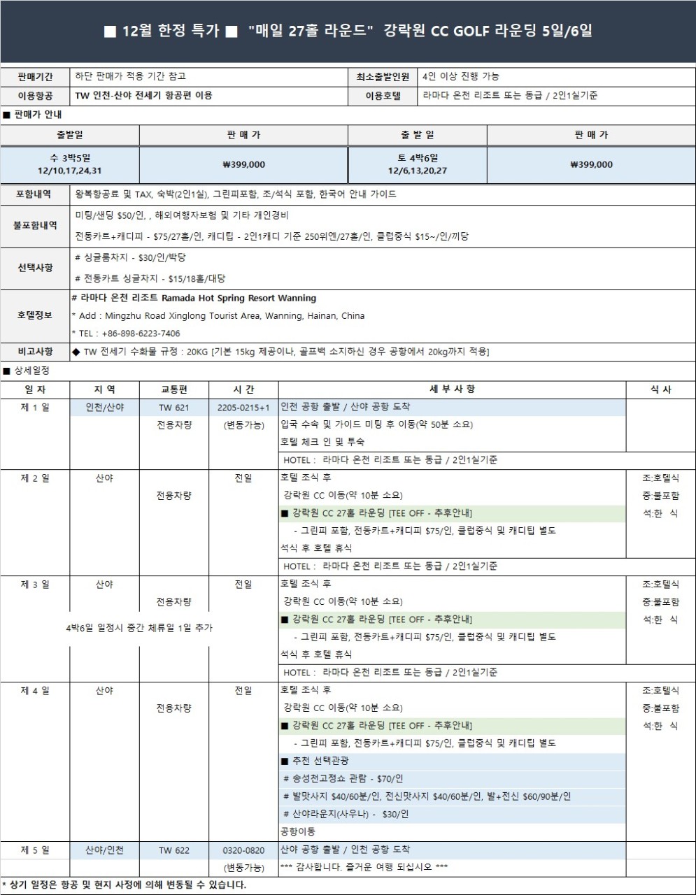 | 중국 하이난 VIP 3색골프 올포함! 패키지 (0) | 2025.11.30 |