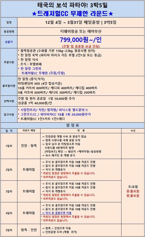 ⛳태국 파타야 트레져힐CC 무제한 라운드 패키지