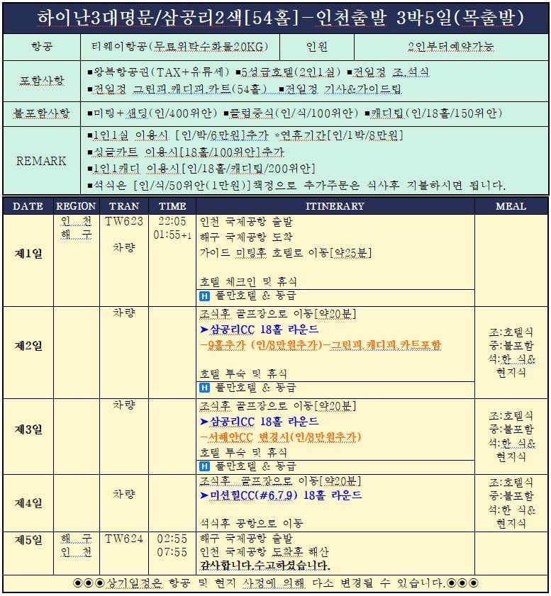 ⛳하이난3대명문"삼공리2색"(3박4일)54홀