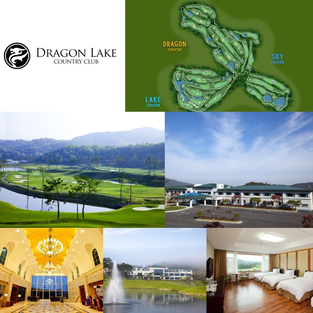 드래곤CC는 생각을 요구하는 드래곤 코스, 탁 트인 푸른 호수를 감상할 수 있는 레이크 코스, 다양한 홀을 경험할 수 있는 스카이 코스로 구성된 27홀 대중제 골프장 입니다.