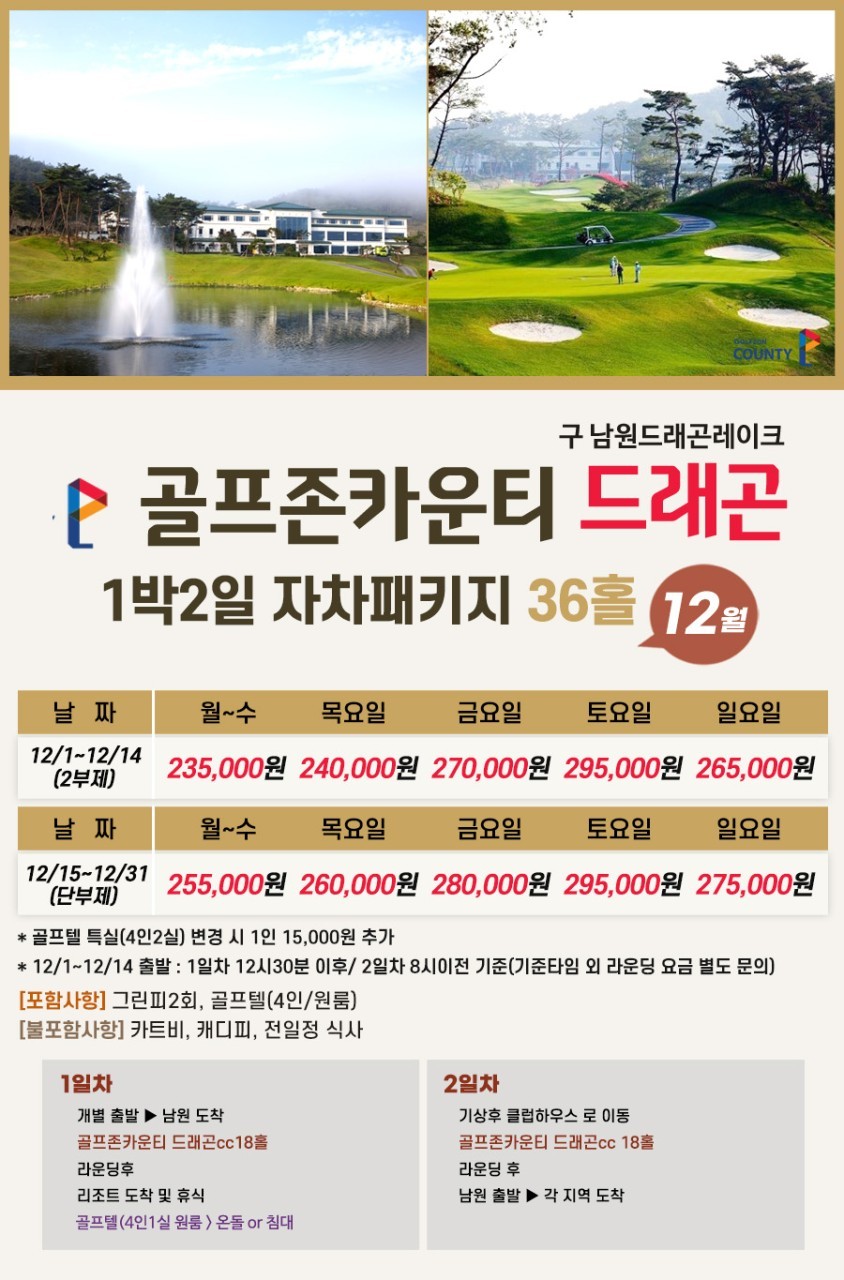 ⛳전북 남원 골프존카운티 드래곤CC 1박2일골프