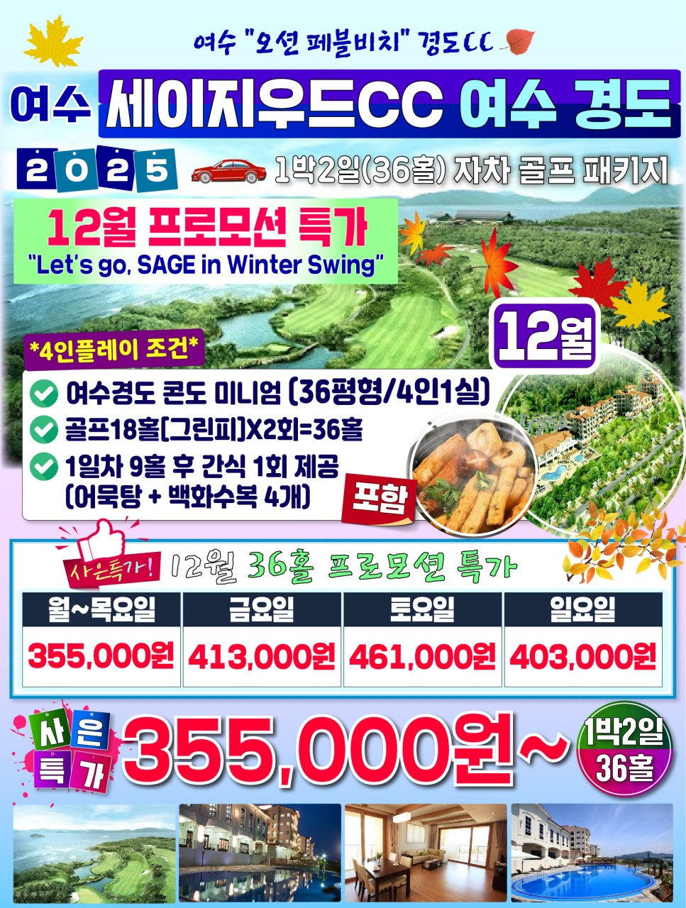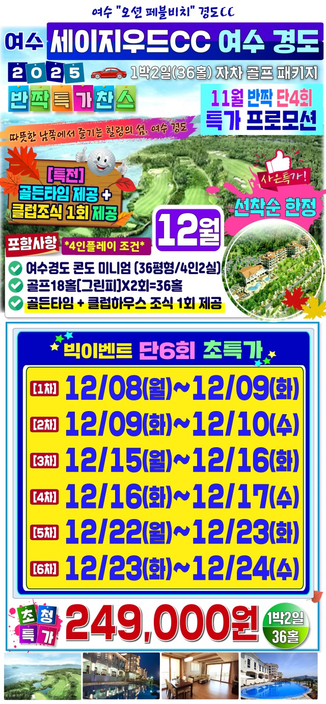⛳전남 여수 세이지우드 경도CC 1박2일골프