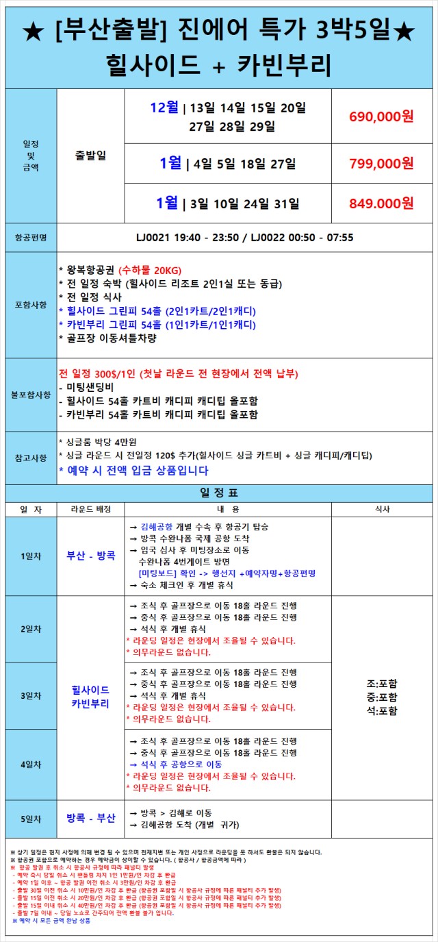 #지정일특가 #힐사이드cc #카빈부리cc #카오야이골프 #태국골프 #동남아골프