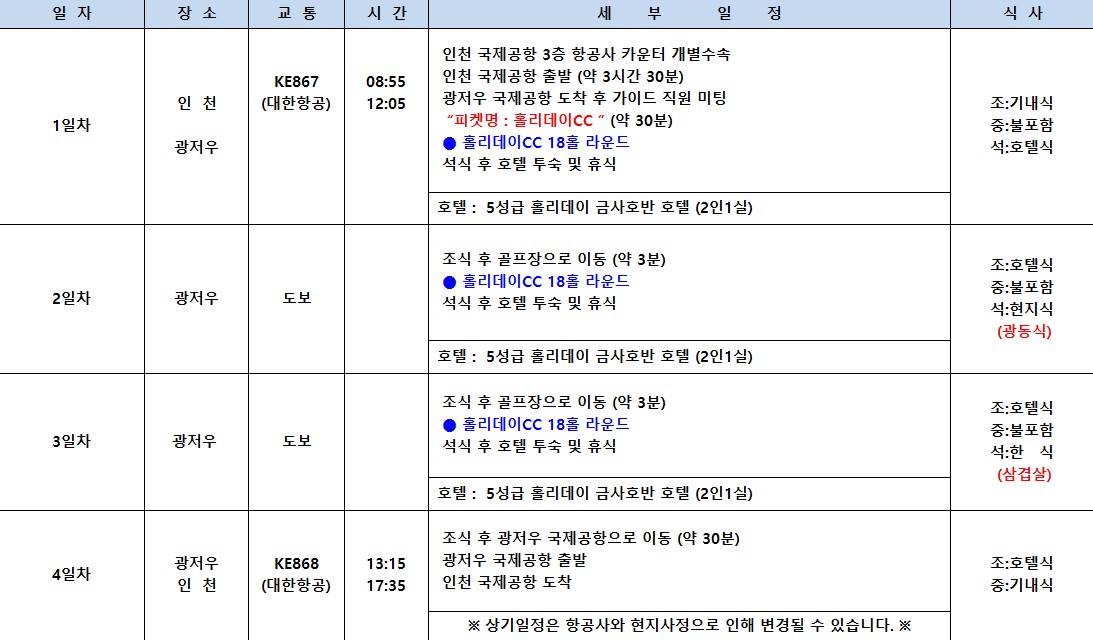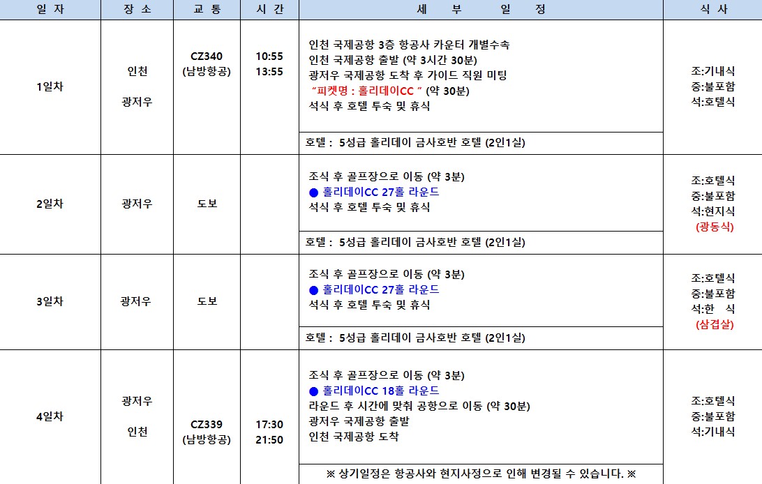 ⛳중국 광저우 홀리데이CC 지정일 특가!