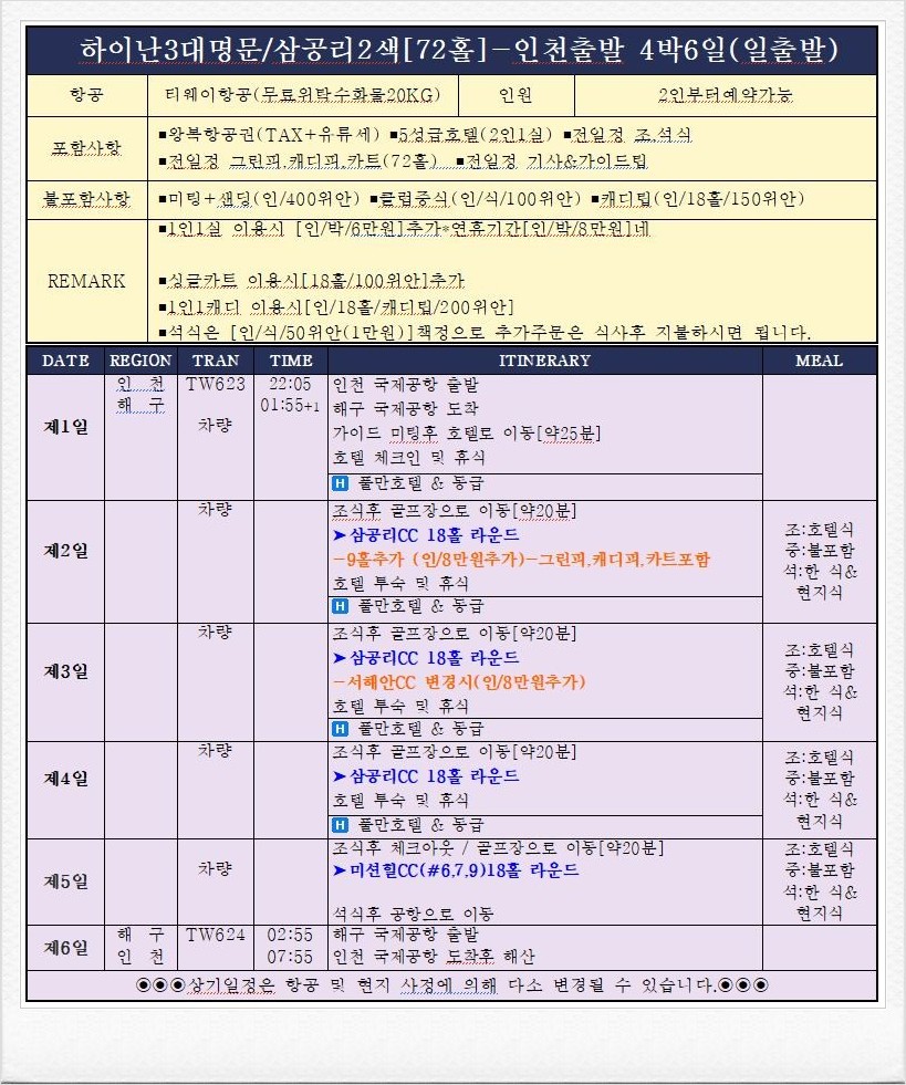 1. 하이난골프 삼공리CC+미션힐CC 패키지
