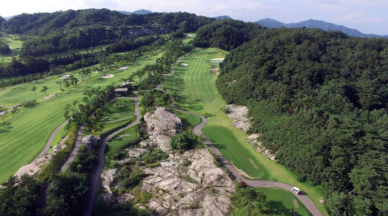 이 골프장은 임상신 대표가 설계하였으며, 기존의 자연림과 암벽, 광활한 암반을 활용하여 독특한 코스를 제공합니다.