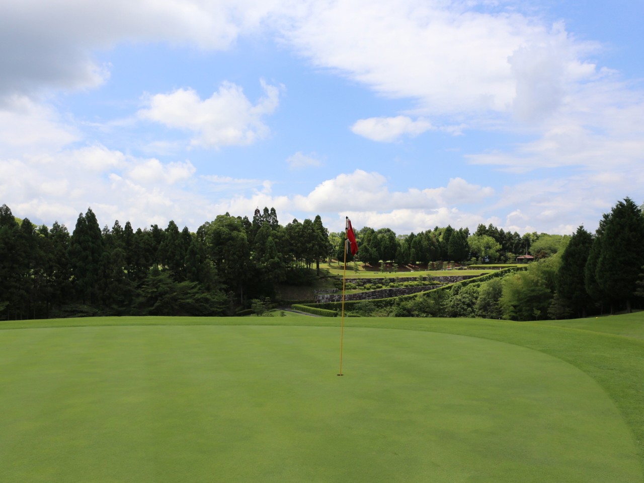 구릉 코스. 사누키 평야의 거의 중앙에 있고 광대한 용지에 레이아웃 완만한 기복의 코스로 되어 있습니다. 연못도 점재하고 있어 엑센트가 되고 있습니다. 가니와 코스는 거리가 길고 특히 아웃의 미들이 어렵습니다. 1번은 연못 넘어야지만 플랫. 빙상 코스는 페어웨이가 넓게 빼앗기고 있지만 변화가 크고 다채로운 테크닉이 필요합니다. 장타와 잔기술 양쪽 모두가 요구되는 코스입니다