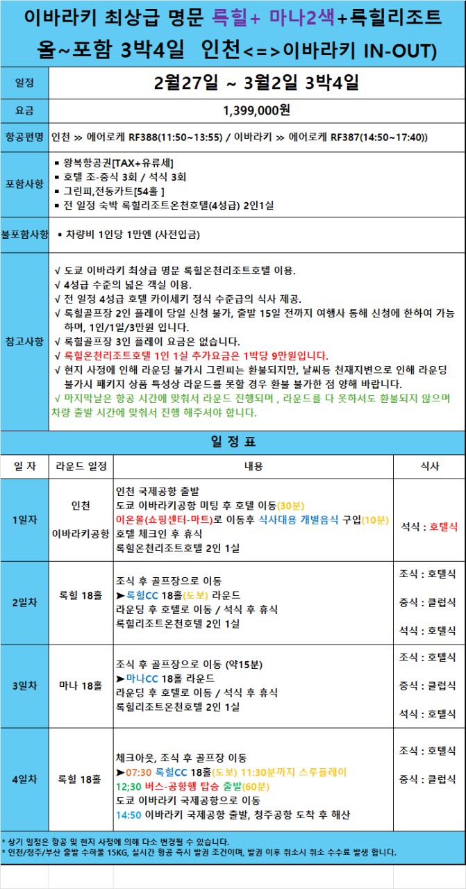 #지정일특가 #연휴골프 #록힐CC #마나CC #이바라키골프 #일본골프