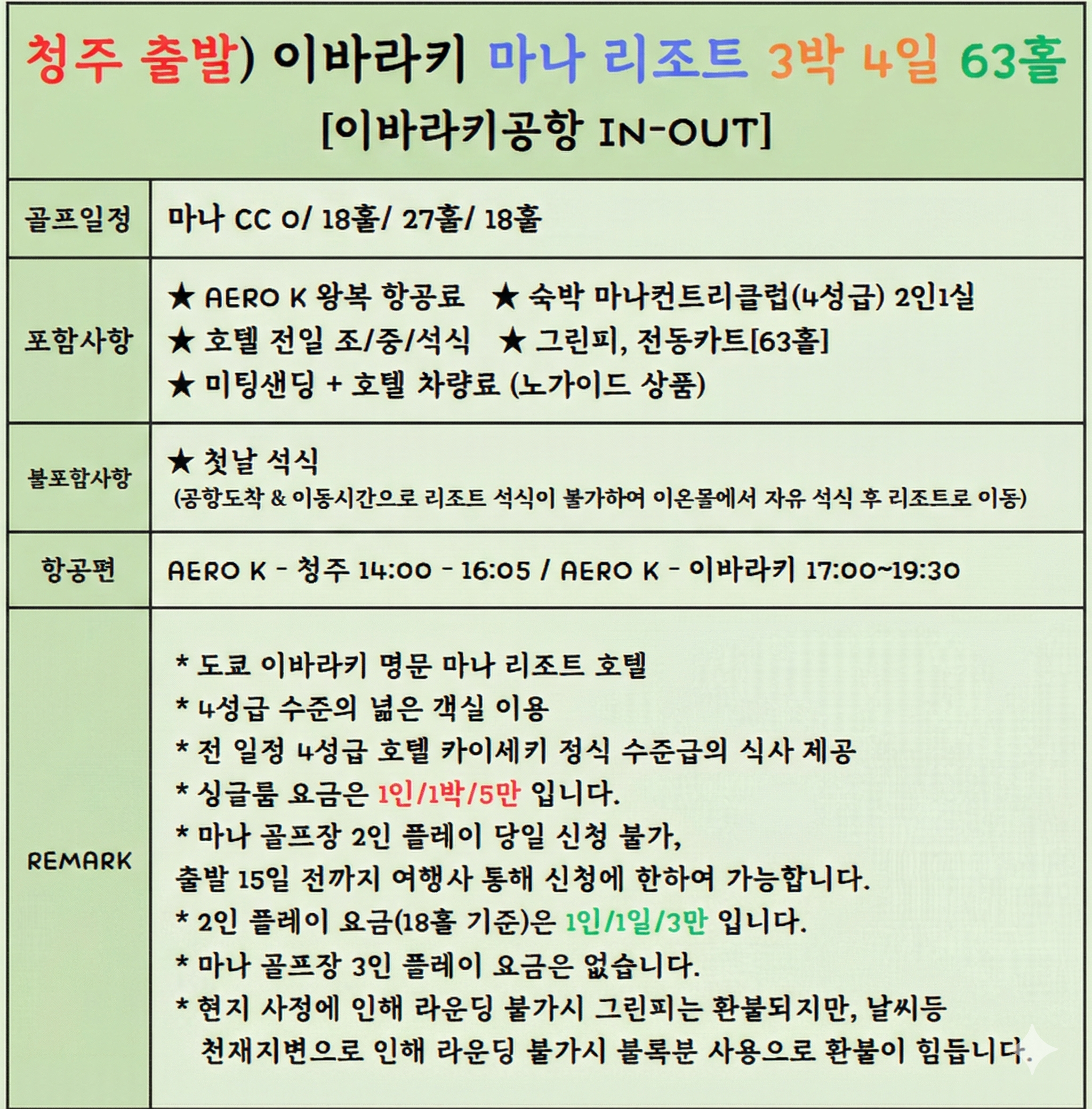 일본 가성비골프패키지로 인기좋은 이바라키는 인천•청주에서 단 2시간 직항으로