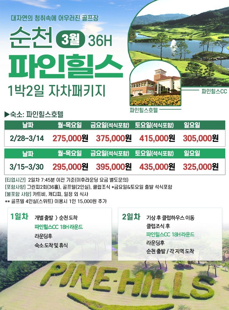 1. 순천 파인힐스CC 1박2일골프