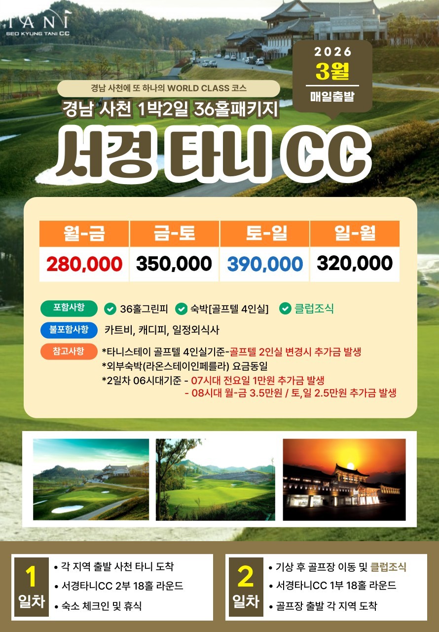 | 경남골프 부곡CC+골프존카운티 경남CC 3월 2색골프패키지 (0) | 2026.02.07 |