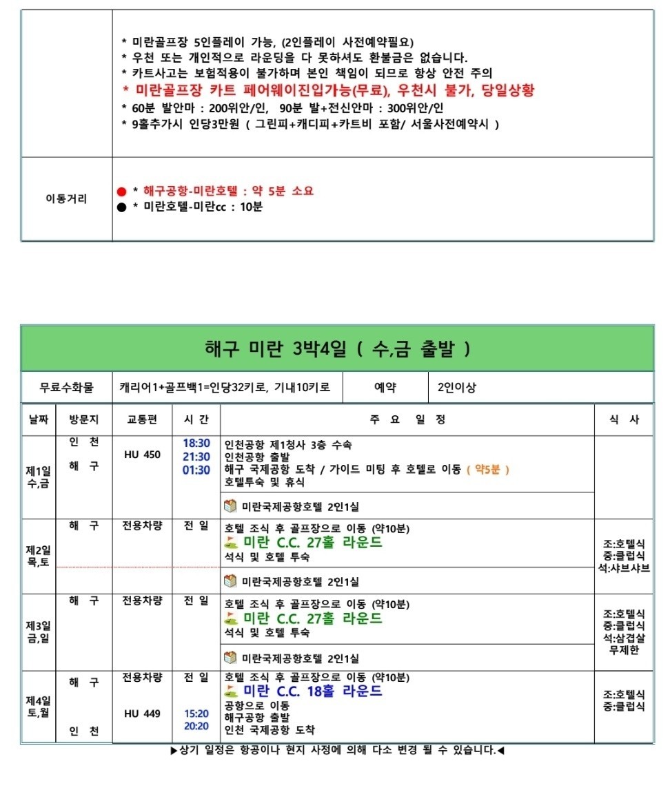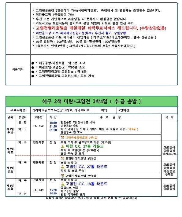 📍전일정 72홀/99홀그린피 포함
