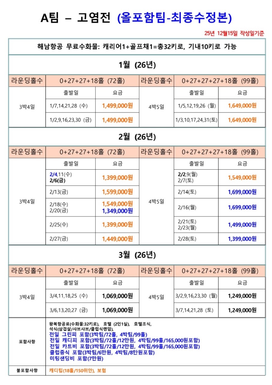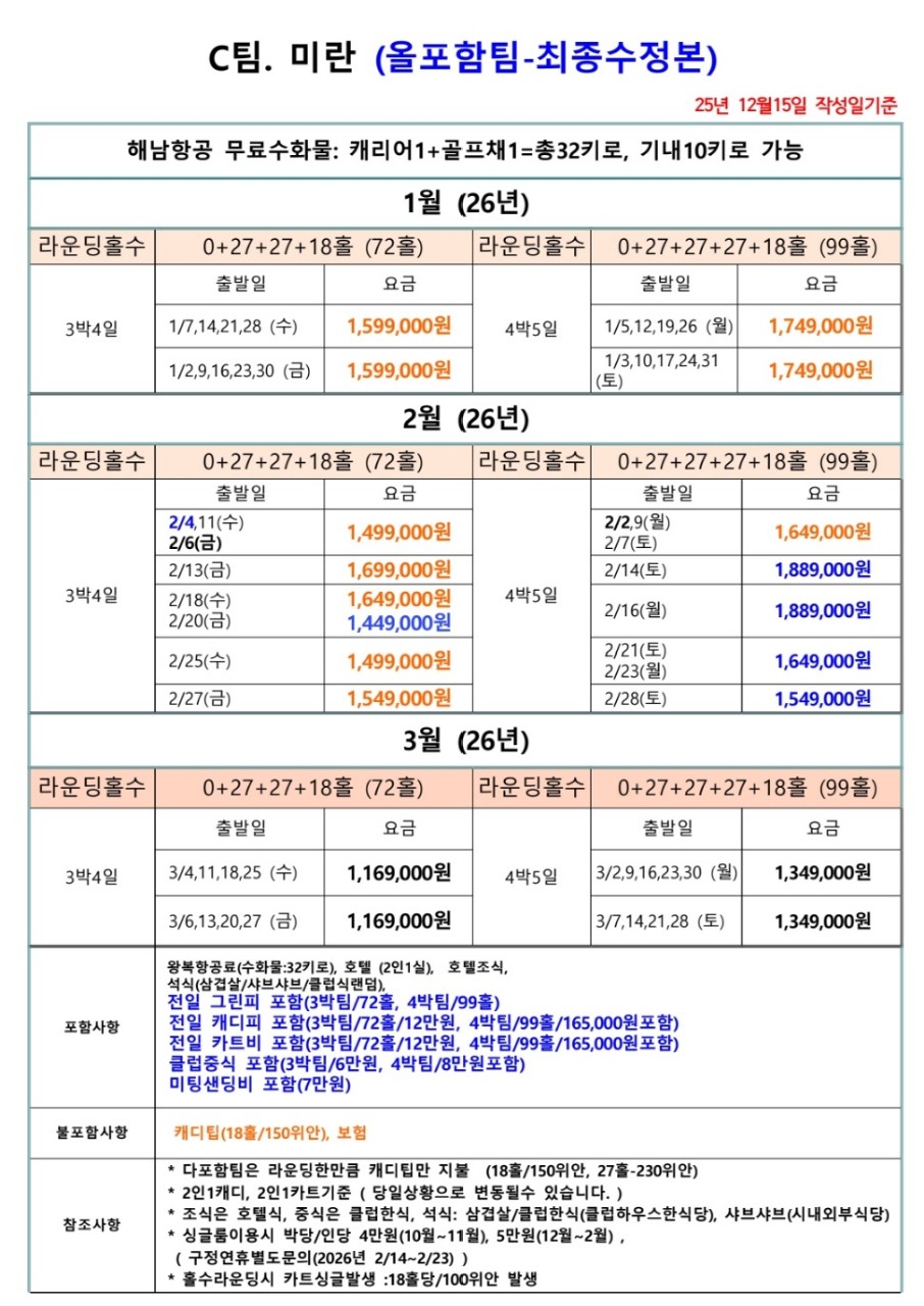 📍전일정 72홀/99홀캐디피 포함