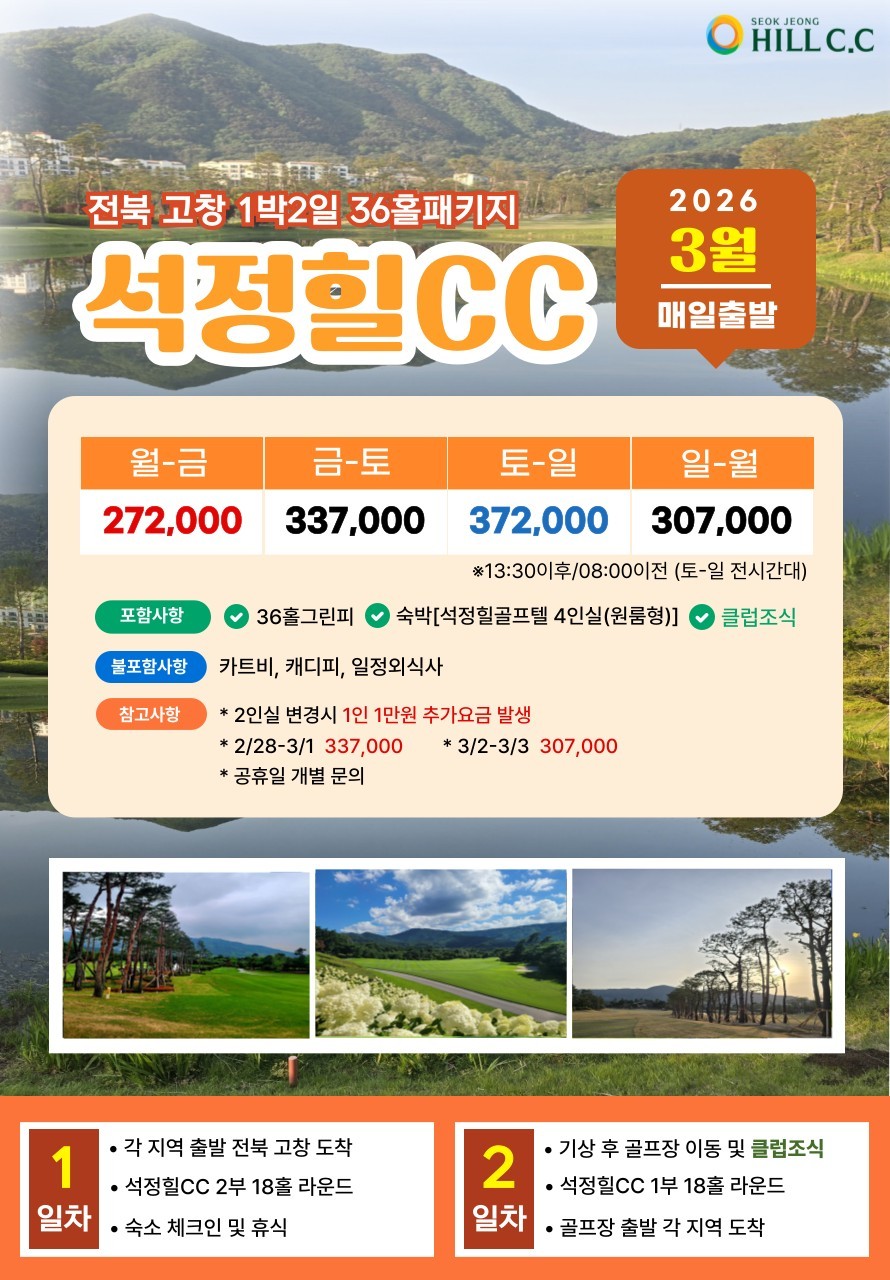 | 전남골프 보성CC 3월 1박2일골프 패키지 (0) | 2026.02.07 |