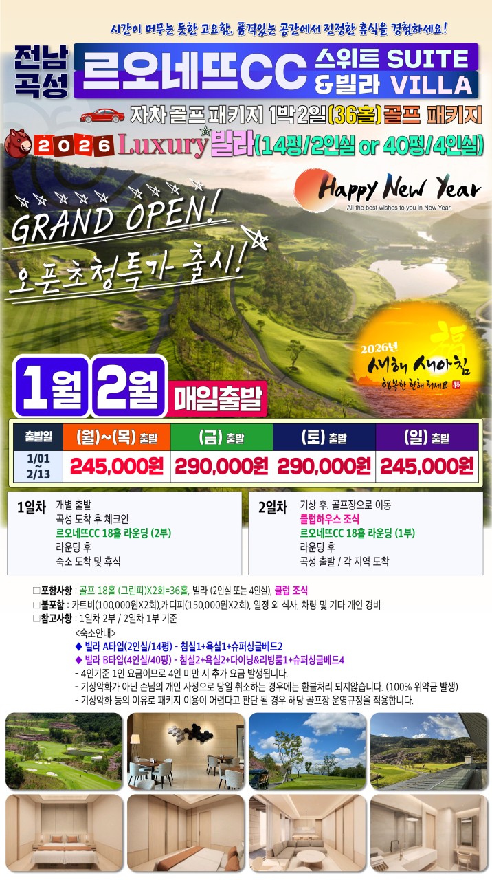 | 전남골프 해피니스CC화순CC베르힐CC 3월 1박/2박골프 패키지 (0) | 2026.02.06 |