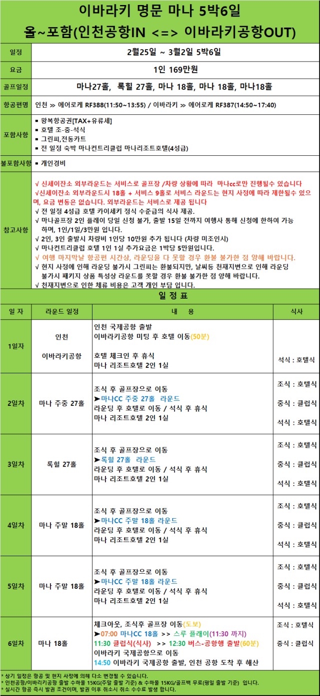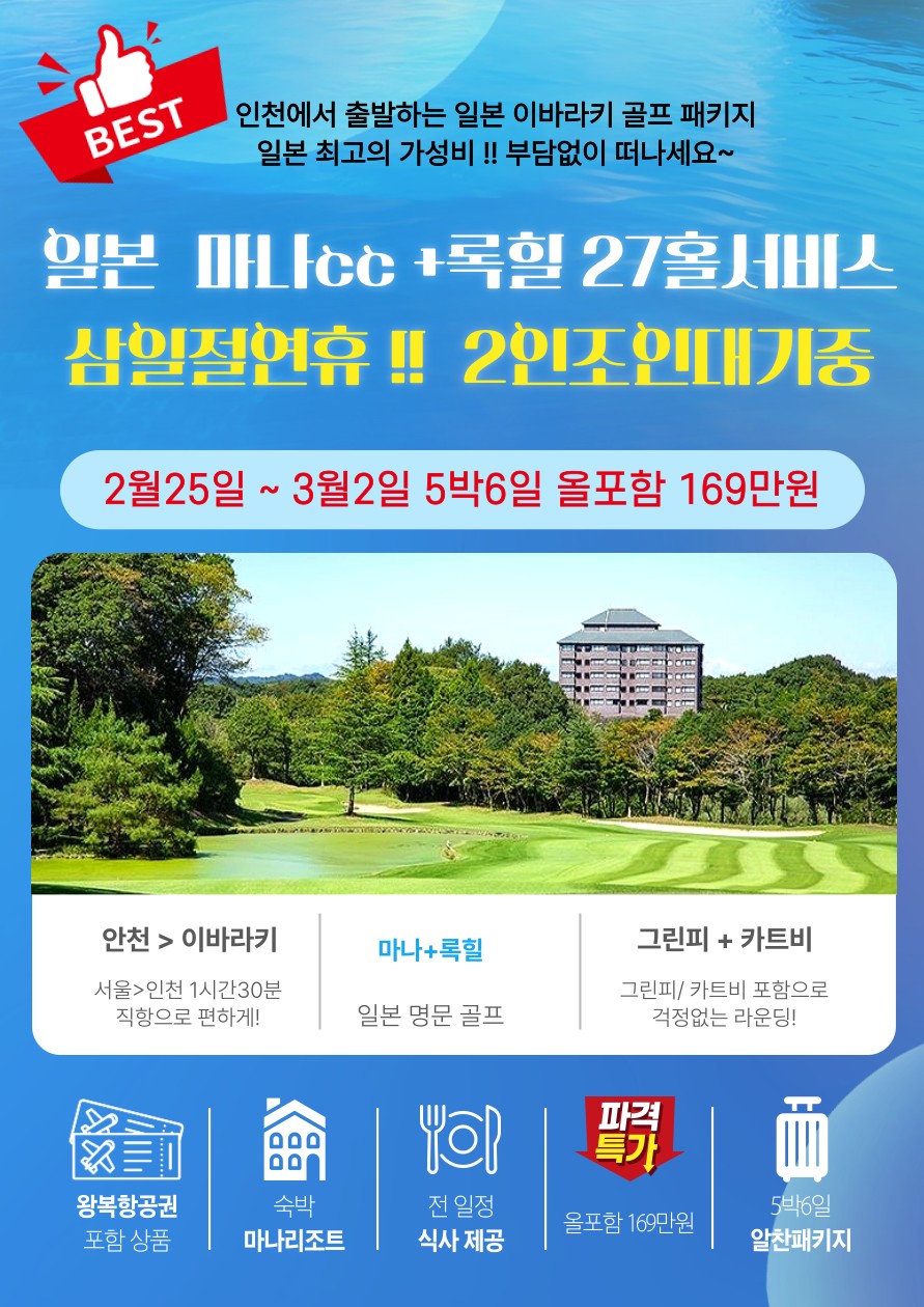 ⛳일본 이바라키 마나CC 삼일절 연휴 2월25일~3월2일 지정일 특가