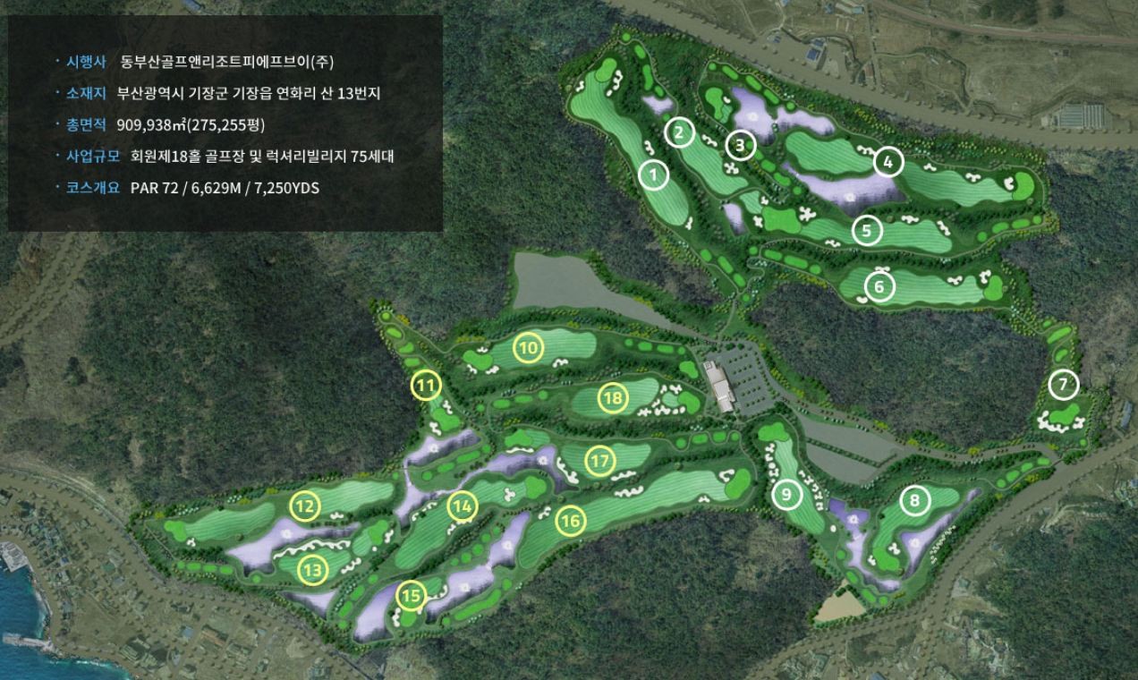 부산 기장군 오시리아 관광단지에 위치한 회원제 18홀 골프장입니다.
