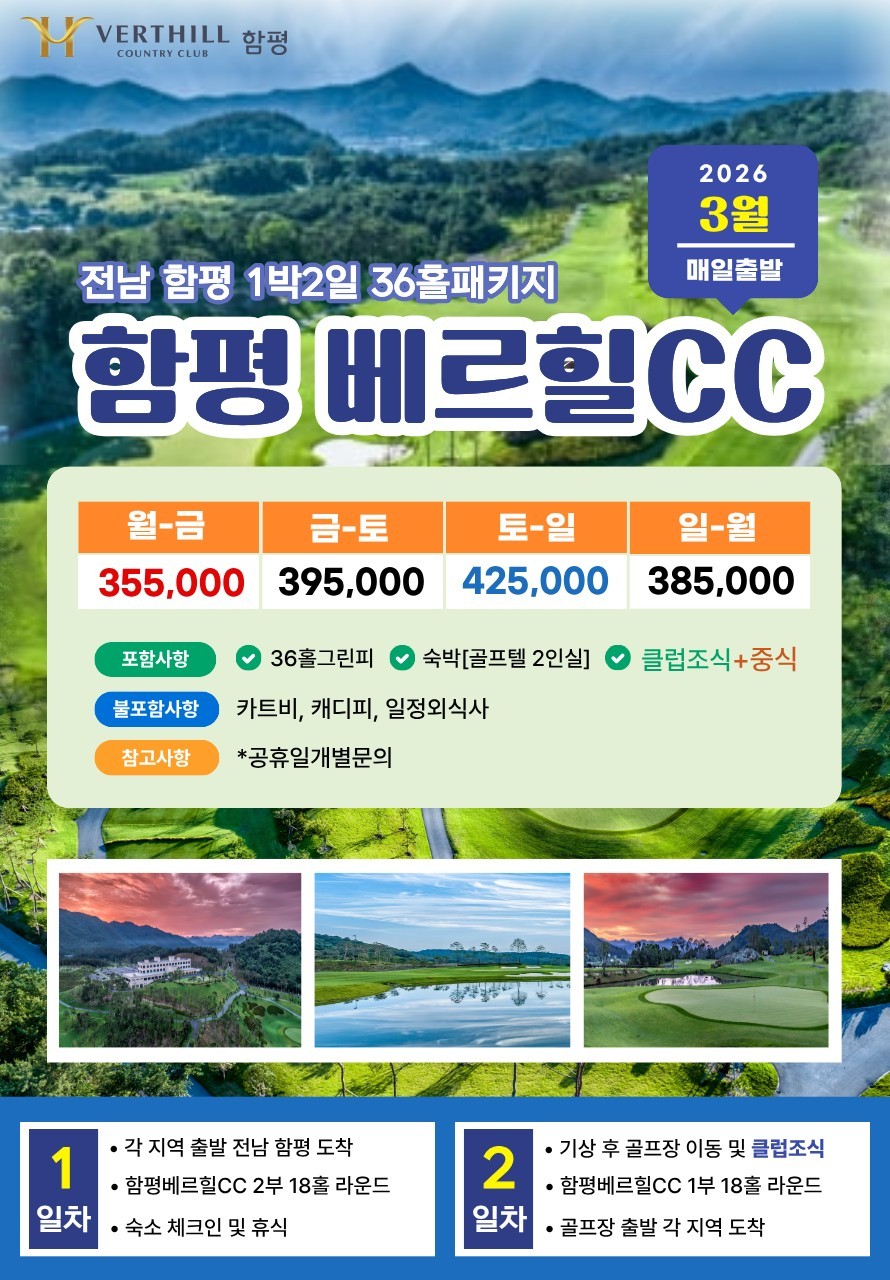 | 전남골프 함평 엘리체CC 3월 1박2일골프 패키지 (0) | 2026.02.22 |