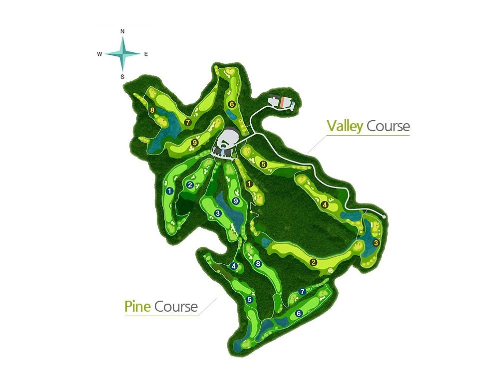 홀 구성: 18홀, Par 73 (파인/밸리 코스)