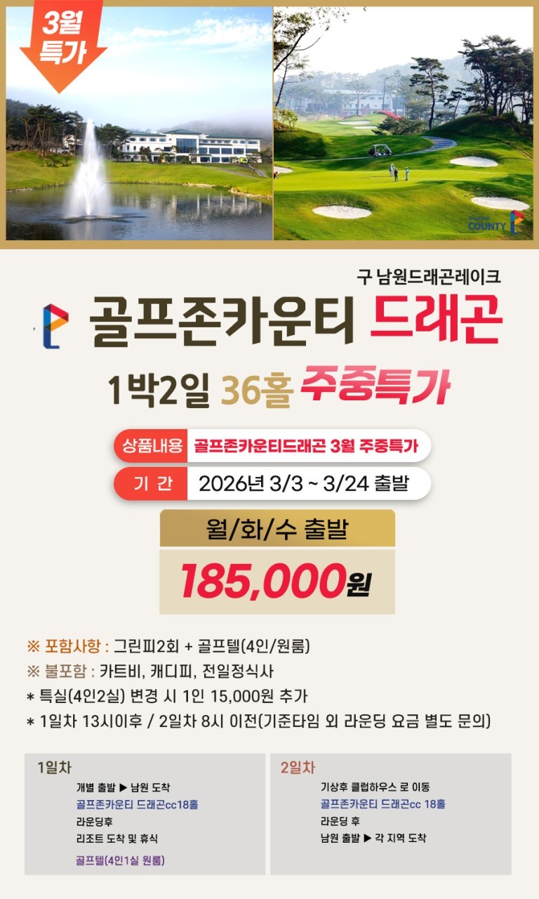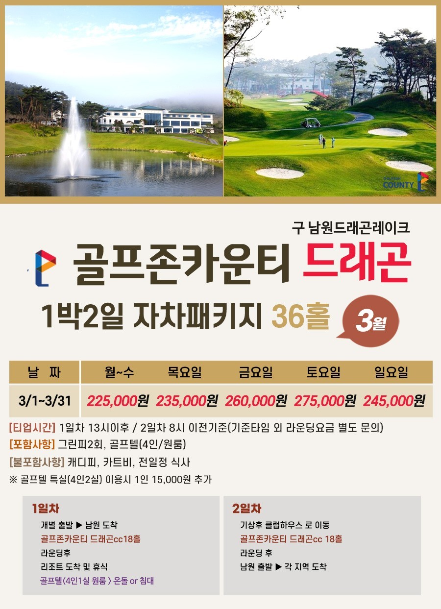 1. 남원 골프존카운티 드래곤CC 패키지