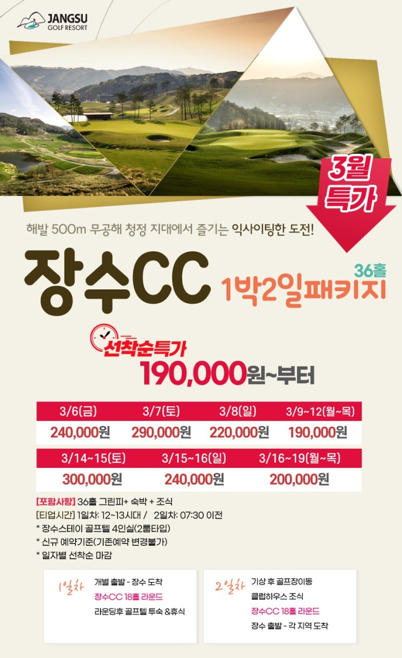 | 전북골프 남원 골프존카운티 드래곤CC 4월 1박2일골프패키지 (0) | 2026.03.05 |