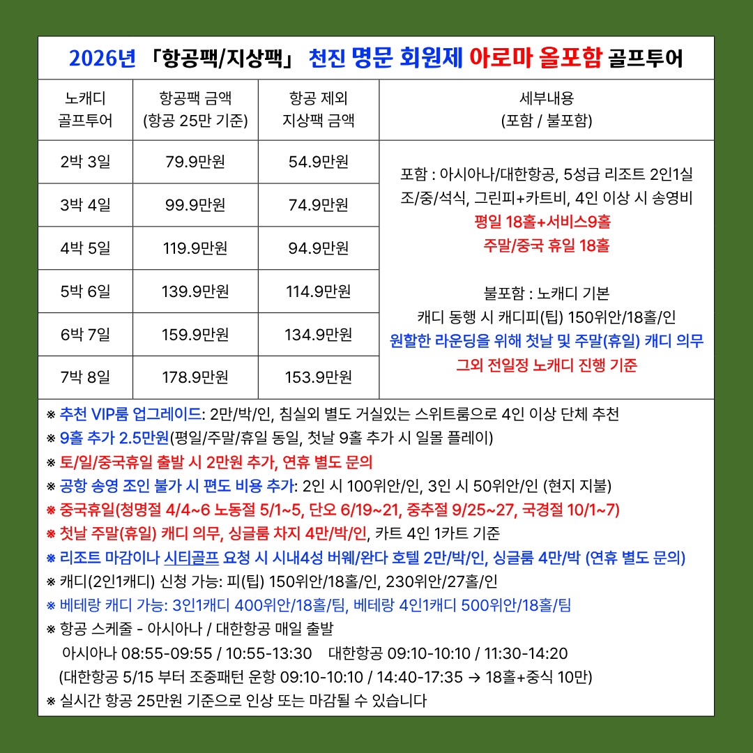 | 중국 천진 진황도 3색 골프 3박4일 패키지 (0) | 2026.03.06 |