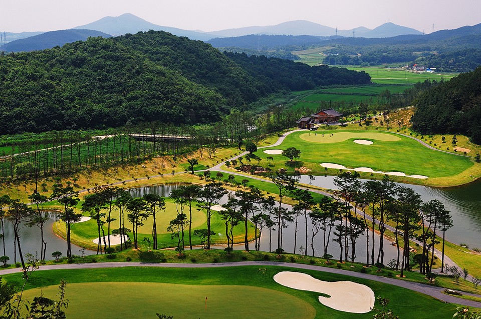 유러피안 스타일의 품격 높은 클럽하우스를 비롯하여 바다와 호수를 조망할 수 있는 서산 코스, 국내 최대의 폭포와 에메랄드빛 호수를 조망할 수 있는 산수 코스로