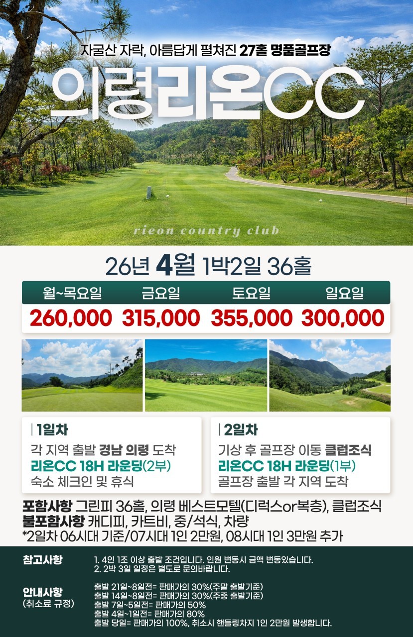 | 경북골프 골프존카운티 구미CC 4월 1박2일골프 패키지 (0) | 2026.03.19 |