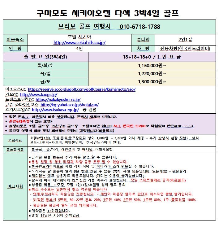 1. 구마모토 세키아 온천골프 패키지