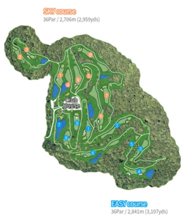Sky Course는 주변 자연 조망이 좋아 힐링 라운딩에 좋다는 평가가 많습니다.