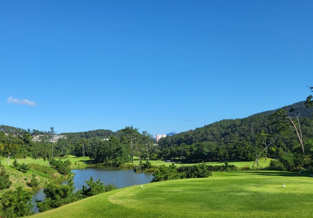 동해 바다 조망이 가능한 코스로, 맑은 날씨에 멋진 뷰를 즐기며 플레이할 수 있습니다.