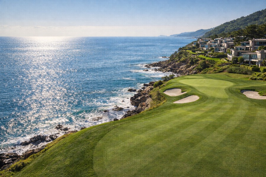 코스 스타일: 리조트형, 대부분 홀이 바다 조망 가능
