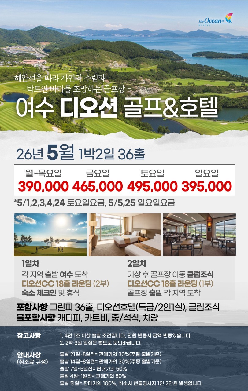 전남골프패키지 디오션CC는 여수에 위치한 바다를 품은 골프장으로, 남해안의 자연 경관을 즐기며 라운드할 수 있는 인기 코스입니다.